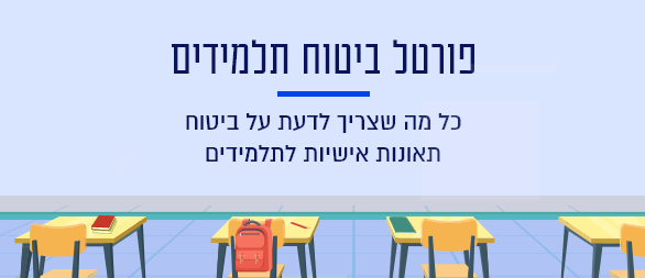 אנו שמחים לעדכנכם על פורטל חדש שנבנה עבורכם בו תוכלו למצוא את כל המידע הנדרש על ביטוח תאונות אישיות לתלמידים.
